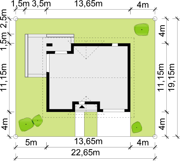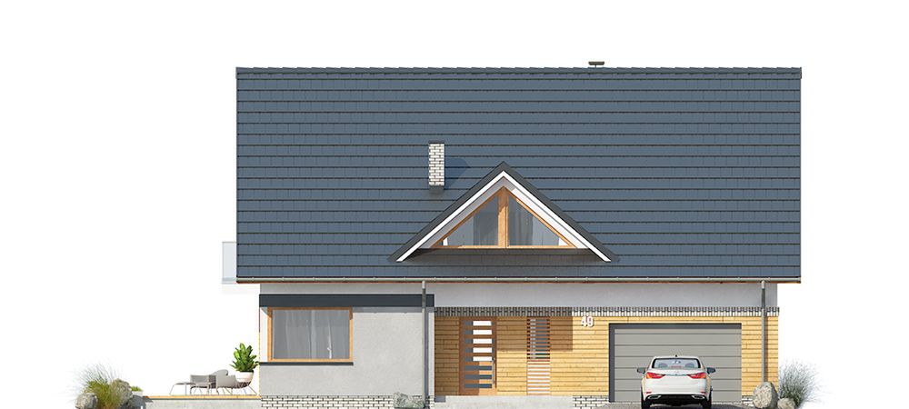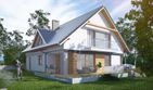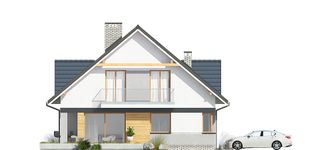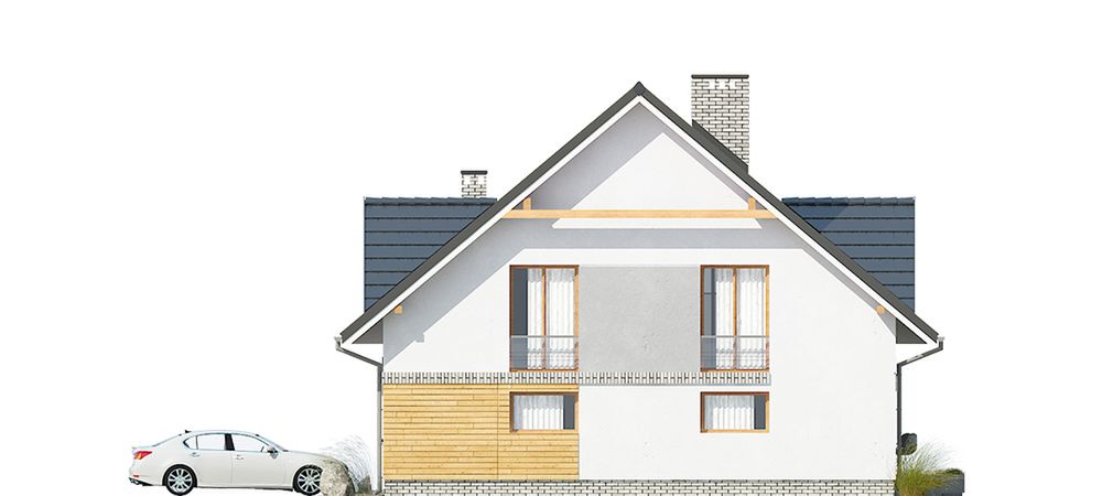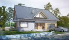 Graficzne opracowanie rzutów poglądowych widocznych na karcie projektu zostało wykonane przez Extradom.pl. Prezentowane przez Extradom.pl wizualizacje wykonane zostały przez autora projektu i należy poczytywać je jedynie za przykład i propozycję wykończenia, wizję architektoniczną autora projektu. Ostateczne wykończenie budynku może nastąpić na wiele sposobów. Szczegółowe rozwiązania zastosowane w oferowanej dokumentacji - w tym również ilość, lokalizacje i wygląd okien, drzwi, kominów - mogą w niewielkim stopniu różnić się od prezentowanej wizualizacji budynku.