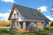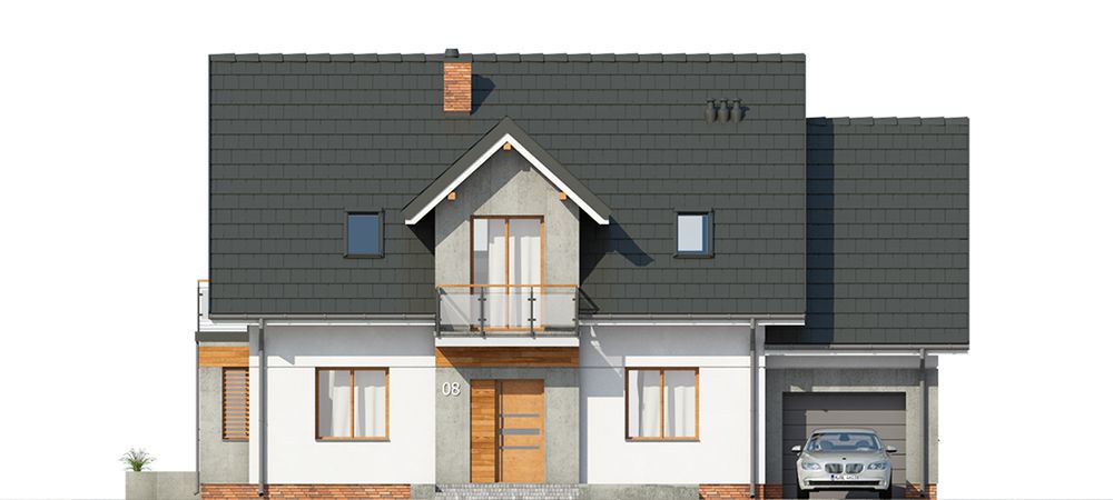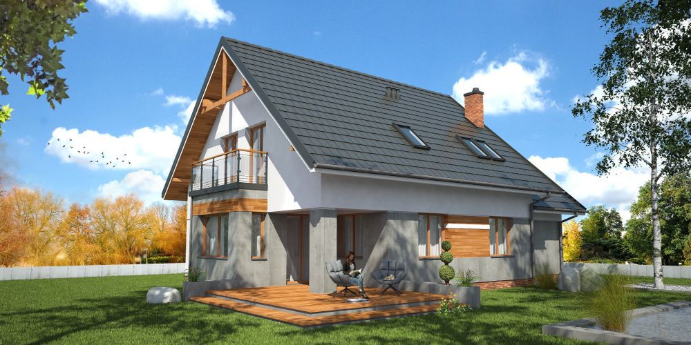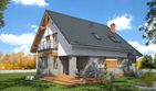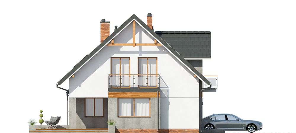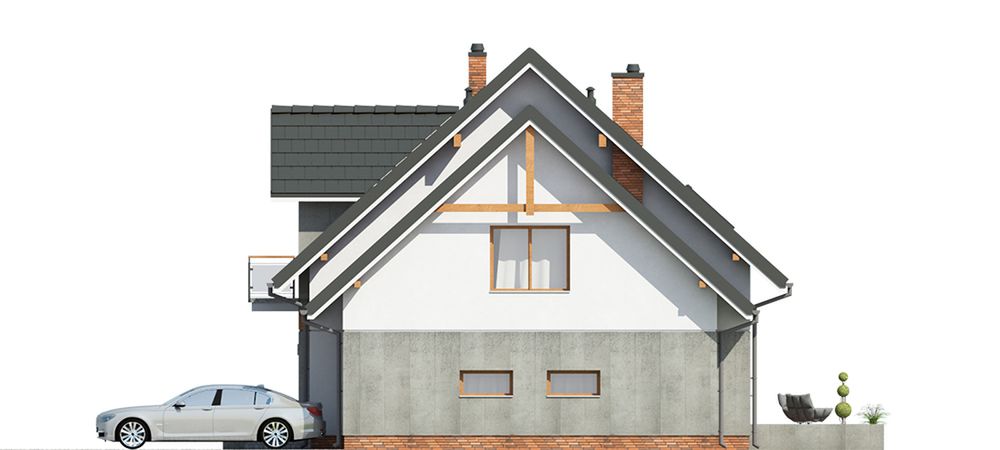 Graficzne opracowanie rzutów poglądowych widocznych na karcie projektu zostało wykonane przez Extradom.pl. Prezentowane przez Extradom.pl wizualizacje wykonane zostały przez autora projektu i należy poczytywać je jedynie za przykład i propozycję wykończenia, wizję architektoniczną autora projektu. Ostateczne wykończenie budynku może nastąpić na wiele sposobów. Szczegółowe rozwiązania zastosowane w oferowanej dokumentacji - w tym również ilość, lokalizacje i wygląd okien, drzwi, kominów - mogą w niewielkim stopniu różnić się od prezentowanej wizualizacji budynku.
