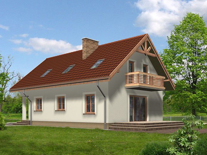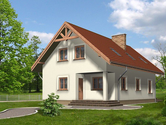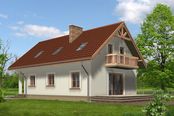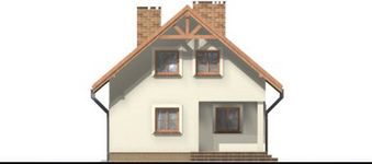 Graficzne opracowanie rzutów poglądowych widocznych na karcie projektu zostało wykonane przez Extradom.pl. Prezentowane przez Extradom.pl wizualizacje wykonane zostały przez autora projektu i należy poczytywać je jedynie za przykład i propozycję wykończenia, wizję architektoniczną autora projektu. Ostateczne wykończenie budynku może nastąpić na wiele sposobów. Szczegółowe rozwiązania zastosowane w oferowanej dokumentacji - w tym również ilość, lokalizacje i wygląd okien, drzwi, kominów - mogą w niewielkim stopniu różnić się od prezentowanej wizualizacji budynku.