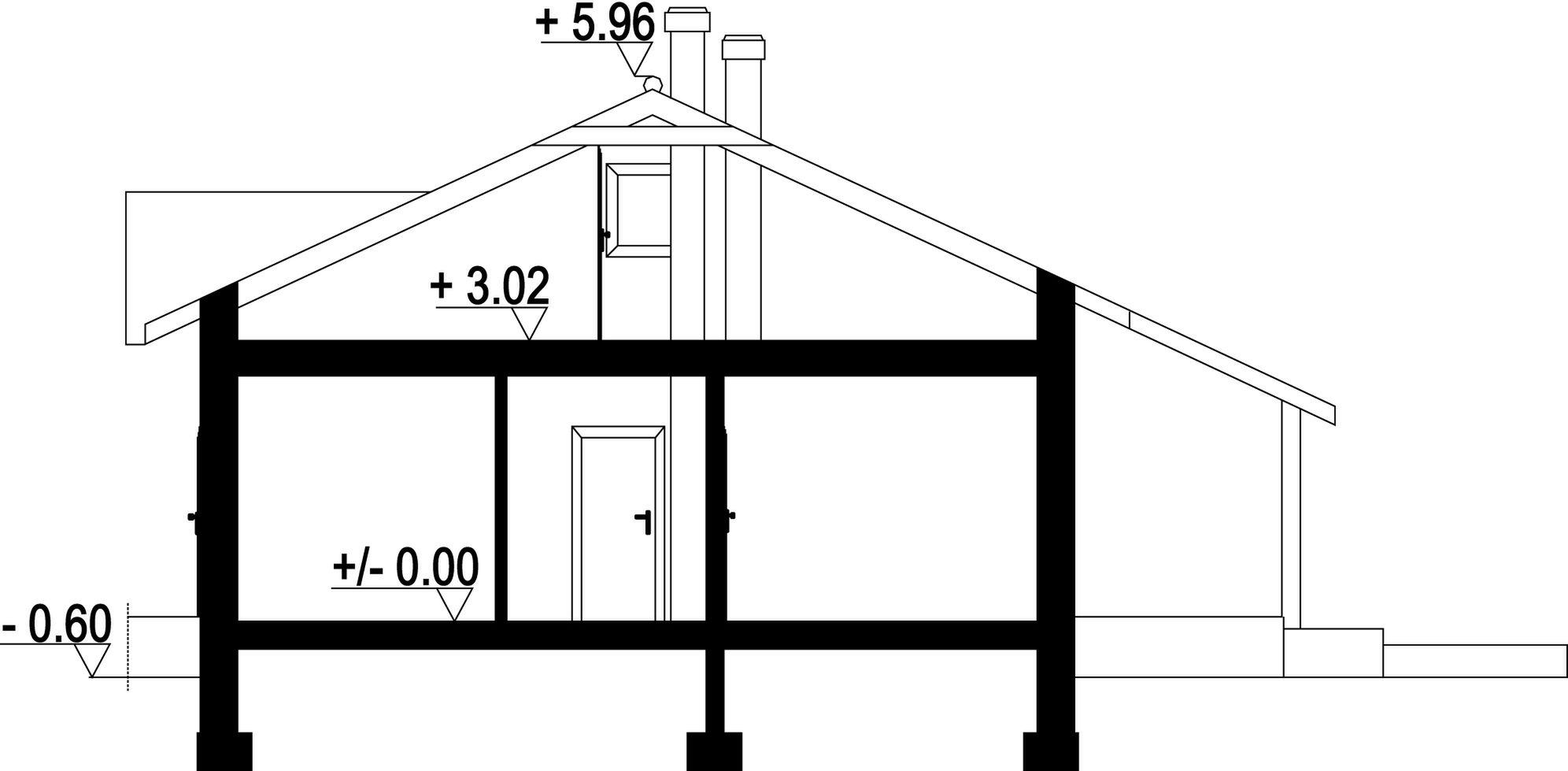 Wysokość ścianki kolankowej: 0.5 m. Strop: płyta żelbetowa. Pokrycie dachu: dachówka ceramiczna. Ściany zewnętrzne: pustaki ceramiczne + styropian. Ściany wewnętrzne: pustaki ceramiczne. Typ ogrzewania: kocioł gazowy.