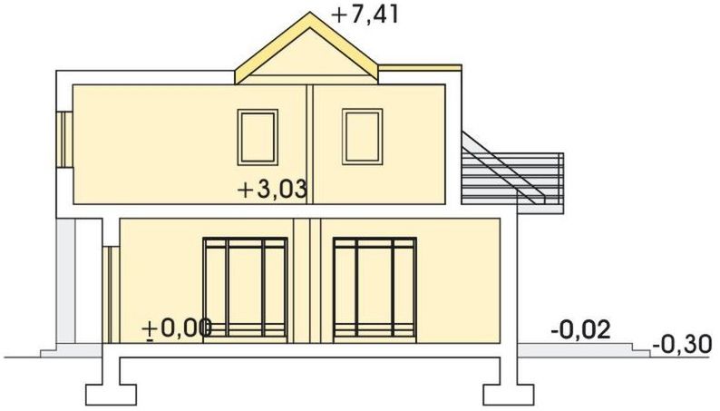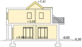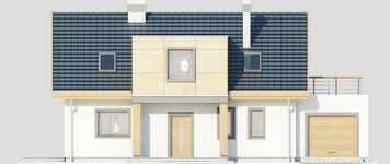 Graficzne opracowanie rzutów poglądowych widocznych na karcie projektu zostało wykonane przez Extradom.pl. Prezentowane przez Extradom.pl wizualizacje wykonane zostały przez autora projektu i należy poczytywać je jedynie za przykład i propozycję wykończenia, wizję architektoniczną autora projektu. Ostateczne wykończenie budynku może nastąpić na wiele sposobów. Szczegółowe rozwiązania zastosowane w oferowanej dokumentacji - w tym również ilość, lokalizacje i wygląd okien, drzwi, kominów - mogą w niewielkim stopniu różnić się od prezentowanej wizualizacji budynku.