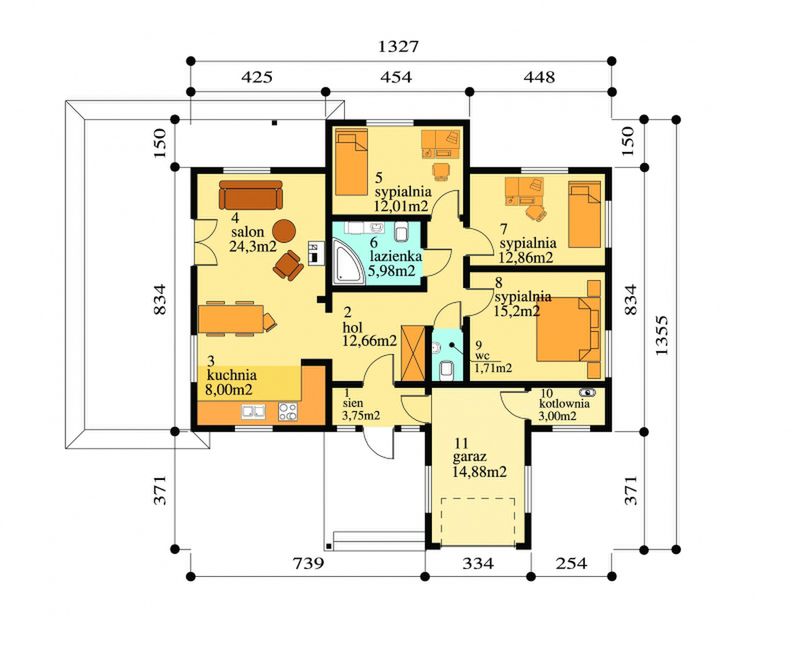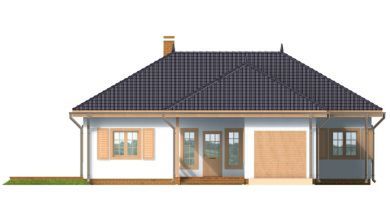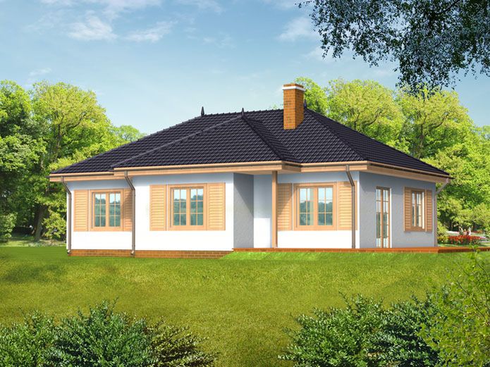 Graficzne opracowanie rzutów poglądowych widocznych na karcie projektu zostało wykonane przez Extradom.pl. Prezentowane przez Extradom.pl wizualizacje wykonane zostały przez autora projektu i należy poczytywać je jedynie za przykład i propozycję wykończenia, wizję architektoniczną autora projektu. Ostateczne wykończenie budynku może nastąpić na wiele sposobów. Szczegółowe rozwiązania zastosowane w oferowanej dokumentacji - w tym również ilość, lokalizacje i wygląd okien, drzwi, kominów - mogą w niewielkim stopniu różnić się od prezentowanej wizualizacji budynku.