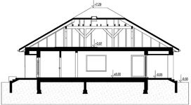 Graficzne opracowanie rzutów poglądowych widocznych na karcie projektu zostało wykonane przez Extradom.pl. Prezentowane przez Extradom.pl wizualizacje wykonane zostały przez autora projektu i należy poczytywać je jedynie za przykład i propozycję wykończenia, wizję architektoniczną autora projektu. Ostateczne wykończenie budynku może nastąpić na wiele sposobów. Szczegółowe rozwiązania zastosowane w oferowanej dokumentacji - w tym również ilość, lokalizacje i wygląd okien, drzwi, kominów - mogą w niewielkim stopniu różnić się od prezentowanej wizualizacji budynku.