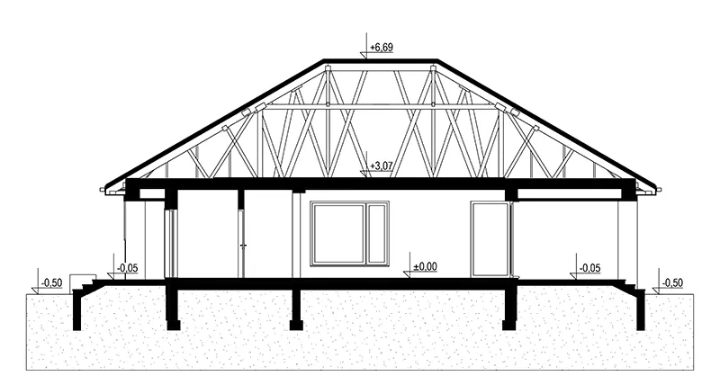 Wersja technologiczna: murowana - beton komórkowy. Strop: dolny pas wiązarów MITEK. Typ schodów: brak. Konstrukcja dachu: prefabrykowane wiązary drewniane MITEK Industries Polska. Typ ogrzewania: Kocioł na gaz. Dostępna wersja z pompą ciepła: Tak. Dostępna wersja z fotowoltaiką: Tak. Wentylacja: mechaniczna. Ściany zewnętrzne: 24 cm beton komórkowy Solbet Optimal. Ściany wewnętrzne: 24 cm beton komórkowy Solbet Optimal. Ściany wewnętrzne działowe: 12 cm beton komórkowy Solbet One. Wentylacja: mechaniczna Heatpex Aria.