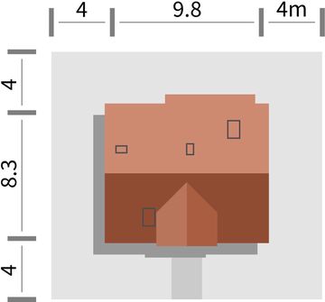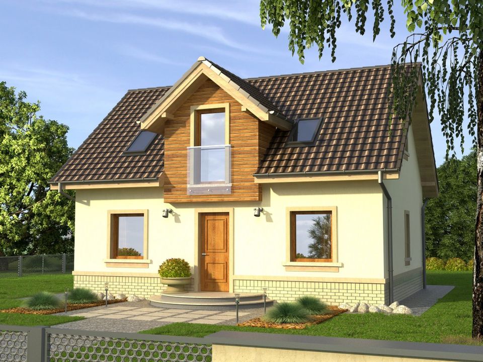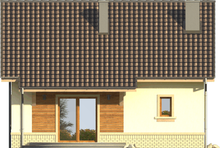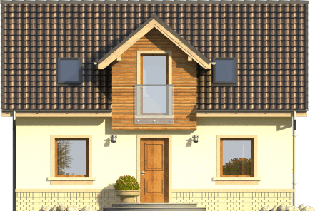 Graficzne opracowanie rzutów poglądowych widocznych na karcie projektu zostało wykonane przez Extradom.pl. Prezentowane przez Extradom.pl wizualizacje wykonane zostały przez autora projektu i należy poczytywać je jedynie za przykład i propozycję wykończenia, wizję architektoniczną autora projektu. Ostateczne wykończenie budynku może nastąpić na wiele sposobów. Szczegółowe rozwiązania zastosowane w oferowanej dokumentacji - w tym również ilość, lokalizacje i wygląd okien, drzwi, kominów - mogą w niewielkim stopniu różnić się od prezentowanej wizualizacji budynku.