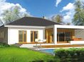 Ściany zewnętrzne: beton komórkowy gr. 24 cm + styropian Termo Organika Termonium Plus gr. 20 cm. Ściany wewnętrzne: bloczek silikatowy gr. 24 cm. Ściany fundamentowe: bloczek betonowy. Strop: Teriva. Konstrukcja dachu: drewniana. W projekcie przewidziano instalację: c.o. i c.w.u. zasilaną kotłem na biomasę, grzejniki podłogowe, instalacje wodno-kanalizacyjna oraz elektryczne, wentylacja grawitacyjna. Pokrycie dachowe: dachówka cementowa (w ramach adaptacji inny materiał), blacha na dachach płaskich. Ścianki działowe na parterze - bloczki. Schody chowane w stropie i wyłaz dachowy - Fakro; okna - PVC. Projekt w fazie koncepcji. Okres oczekiwania: 4 tygodnie od daty zamówienia.