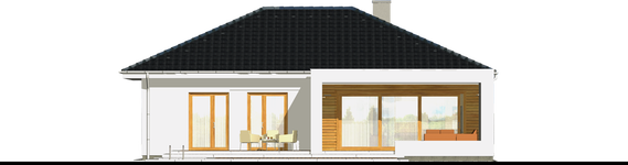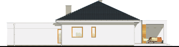 Graficzne opracowanie rzutów poglądowych widocznych na karcie projektu zostało wykonane przez Extradom.pl. Prezentowane przez Extradom.pl wizualizacje wykonane zostały przez autora projektu i należy poczytywać je jedynie za przykład i propozycję wykończenia, wizję architektoniczną autora projektu. Ostateczne wykończenie budynku może nastąpić na wiele sposobów. Szczegółowe rozwiązania zastosowane w oferowanej dokumentacji - w tym również ilość, lokalizacje i wygląd okien, drzwi, kominów - mogą w niewielkim stopniu różnić się od prezentowanej wizualizacji budynku.