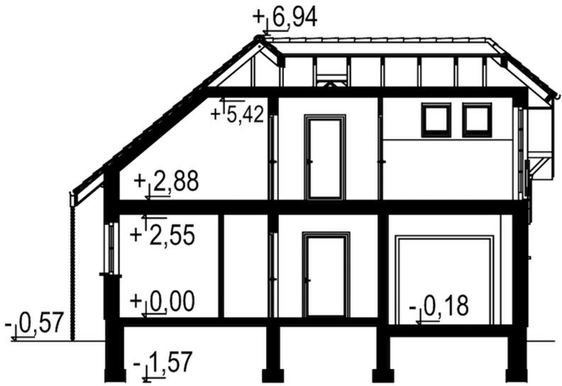 Ściany zewnętrzne dwuwarstwowe: cegła SILKA + wełna mineralna + tynk. Ściany wewnętrzne: cegła SILKA i/lub płyty na ruszcie stalowym, wygłuszone wełną mineralną. Strop/więźba dachowa: wylewany/tradycyjna drewniana. Poszycie dachu: dachówka cementowa. Kominy: systemowe. Stolarka: drewniana lub PCV. Instalacja centralnego ogrzewania: kocioł dwufunkcyjny + grzejniki.