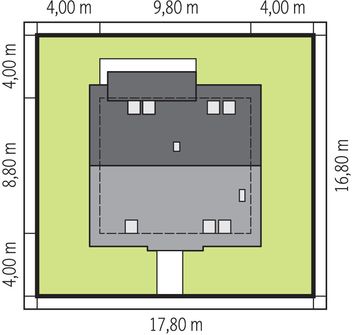 Graficzne opracowanie rzutów poglądowych widocznych na karcie projektu zostało wykonane przez Extradom.pl. Prezentowane przez Extradom.pl wizualizacje wykonane zostały przez autora projektu i należy poczytywać je jedynie za przykład i propozycję wykończenia, wizję architektoniczną autora projektu. Ostateczne wykończenie budynku może nastąpić na wiele sposobów. Szczegółowe rozwiązania zastosowane w oferowanej dokumentacji - w tym również ilość, lokalizacje i wygląd okien, drzwi, kominów - mogą w niewielkim stopniu różnić się od prezentowanej wizualizacji budynku.