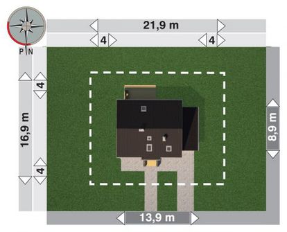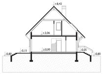 Graficzne opracowanie rzutów poglądowych widocznych na karcie projektu zostało wykonane przez Extradom.pl. Prezentowane przez Extradom.pl wizualizacje wykonane zostały przez autora projektu i należy poczytywać je jedynie za przykład i propozycję wykończenia, wizję architektoniczną autora projektu. Ostateczne wykończenie budynku może nastąpić na wiele sposobów. Szczegółowe rozwiązania zastosowane w oferowanej dokumentacji - w tym również ilość, lokalizacje i wygląd okien, drzwi, kominów - mogą w niewielkim stopniu różnić się od prezentowanej wizualizacji budynku.