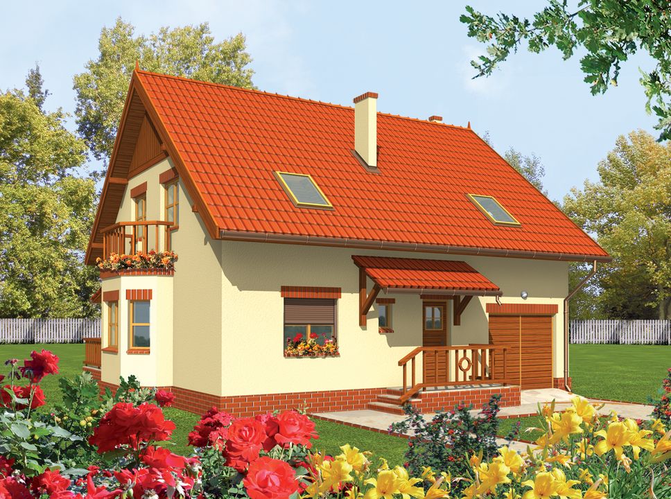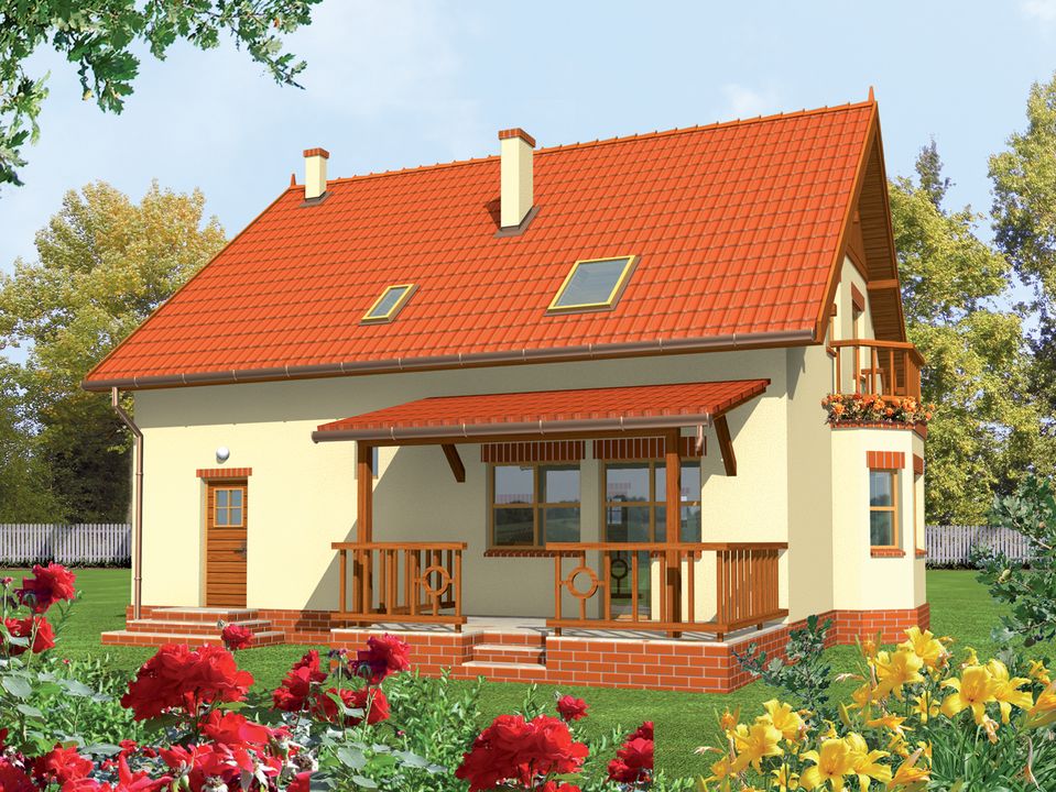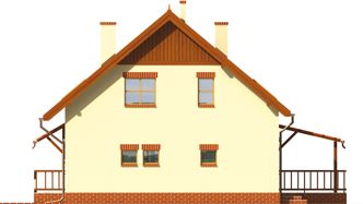 Graficzne opracowanie rzutów poglądowych widocznych na karcie projektu zostało wykonane przez Extradom.pl. Prezentowane przez Extradom.pl wizualizacje wykonane zostały przez autora projektu i należy poczytywać je jedynie za przykład i propozycję wykończenia, wizję architektoniczną autora projektu. Ostateczne wykończenie budynku może nastąpić na wiele sposobów. Szczegółowe rozwiązania zastosowane w oferowanej dokumentacji - w tym również ilość, lokalizacje i wygląd okien, drzwi, kominów - mogą w niewielkim stopniu różnić się od prezentowanej wizualizacji budynku.