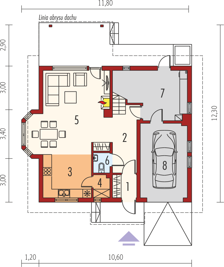 Graficzne opracowanie rzutów poglądowych widocznych na karcie projektu zostało wykonane przez Extradom.pl. Prezentowane przez Extradom.pl wizualizacje wykonane zostały przez autora projektu i należy poczytywać je jedynie za przykład i propozycję wykończenia, wizję architektoniczną autora projektu. Ostateczne wykończenie budynku może nastąpić na wiele sposobów. Szczegółowe rozwiązania zastosowane w oferowanej dokumentacji - w tym również ilość, lokalizacje i wygląd okien, drzwi, kominów - mogą w niewielkim stopniu różnić się od prezentowanej wizualizacji budynku.