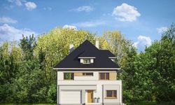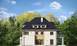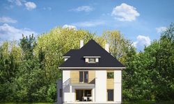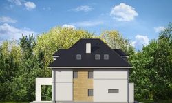 Graficzne opracowanie rzutów poglądowych widocznych na karcie projektu zostało wykonane przez Extradom.pl. Prezentowane przez Extradom.pl wizualizacje wykonane zostały przez autora projektu i należy poczytywać je jedynie za przykład i propozycję wykończenia, wizję architektoniczną autora projektu. Ostateczne wykończenie budynku może nastąpić na wiele sposobów. Szczegółowe rozwiązania zastosowane w oferowanej dokumentacji - w tym również ilość, lokalizacje i wygląd okien, drzwi, kominów - mogą w niewielkim stopniu różnić się od prezentowanej wizualizacji budynku.