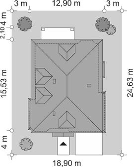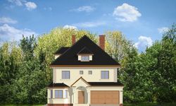 Graficzne opracowanie rzutów poglądowych widocznych na karcie projektu zostało wykonane przez Extradom.pl. Prezentowane przez Extradom.pl wizualizacje wykonane zostały przez autora projektu i należy poczytywać je jedynie za przykład i propozycję wykończenia, wizję architektoniczną autora projektu. Ostateczne wykończenie budynku może nastąpić na wiele sposobów. Szczegółowe rozwiązania zastosowane w oferowanej dokumentacji - w tym również ilość, lokalizacje i wygląd okien, drzwi, kominów - mogą w niewielkim stopniu różnić się od prezentowanej wizualizacji budynku.