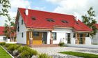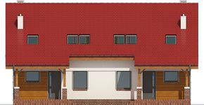 Graficzne opracowanie rzutów poglądowych widocznych na karcie projektu zostało wykonane przez Extradom.pl. Prezentowane przez Extradom.pl wizualizacje wykonane zostały przez autora projektu i należy poczytywać je jedynie za przykład i propozycję wykończenia, wizję architektoniczną autora projektu. Ostateczne wykończenie budynku może nastąpić na wiele sposobów. Szczegółowe rozwiązania zastosowane w oferowanej dokumentacji - w tym również ilość, lokalizacje i wygląd okien, drzwi, kominów - mogą w niewielkim stopniu różnić się od prezentowanej wizualizacji budynku.