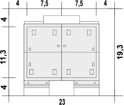 Budynek dwulokalowy posadowiony na wspólnym fundamencie. Jeśli planujesz budowę na osobnych działkach zamów pojedyncze segmenty: podstawa + lustro.