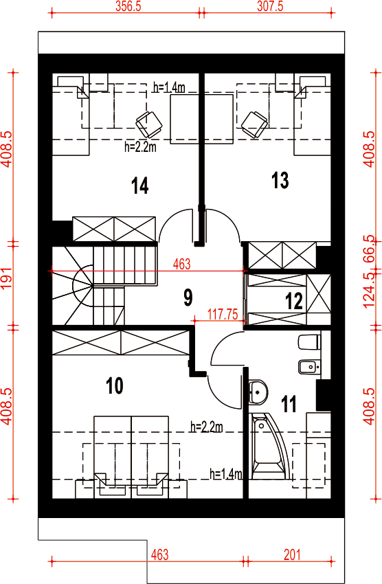 Graficzne opracowanie rzutów poglądowych widocznych na karcie projektu zostało wykonane przez Extradom.pl. Prezentowane przez Extradom.pl wizualizacje wykonane zostały przez autora projektu i należy poczytywać je jedynie za przykład i propozycję wykończenia, wizję architektoniczną autora projektu. Ostateczne wykończenie budynku może nastąpić na wiele sposobów. Szczegółowe rozwiązania zastosowane w oferowanej dokumentacji - w tym również ilość, lokalizacje i wygląd okien, drzwi, kominów - mogą w niewielkim stopniu różnić się od prezentowanej wizualizacji budynku.