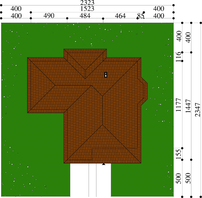 Graficzne opracowanie rzutów poglądowych widocznych na karcie projektu zostało wykonane przez Extradom.pl. Prezentowane przez Extradom.pl wizualizacje wykonane zostały przez autora projektu i należy poczytywać je jedynie za przykład i propozycję wykończenia, wizję architektoniczną autora projektu. Ostateczne wykończenie budynku może nastąpić na wiele sposobów. Szczegółowe rozwiązania zastosowane w oferowanej dokumentacji - w tym również ilość, lokalizacje i wygląd okien, drzwi, kominów - mogą w niewielkim stopniu różnić się od prezentowanej wizualizacji budynku.