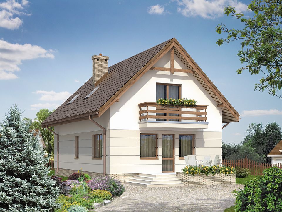 Graficzne opracowanie rzutów poglądowych widocznych na karcie projektu zostało wykonane przez Extradom.pl. Prezentowane przez Extradom.pl wizualizacje wykonane zostały przez autora projektu i należy poczytywać je jedynie za przykład i propozycję wykończenia, wizję architektoniczną autora projektu. Ostateczne wykończenie budynku może nastąpić na wiele sposobów. Szczegółowe rozwiązania zastosowane w oferowanej dokumentacji - w tym również ilość, lokalizacje i wygląd okien, drzwi, kominów - mogą w niewielkim stopniu różnić się od prezentowanej wizualizacji budynku.