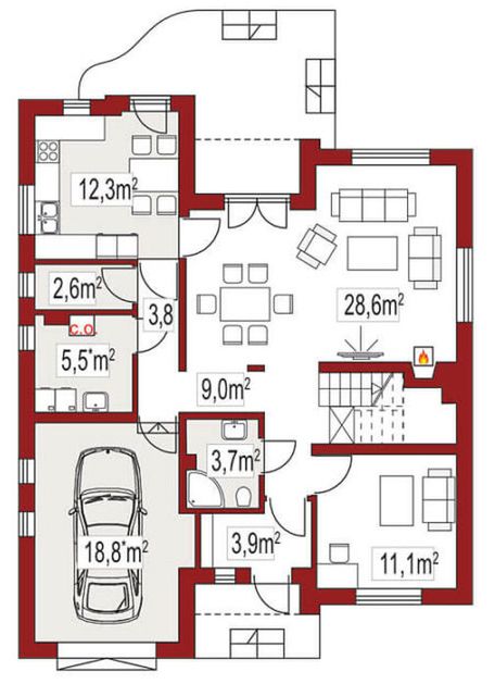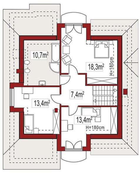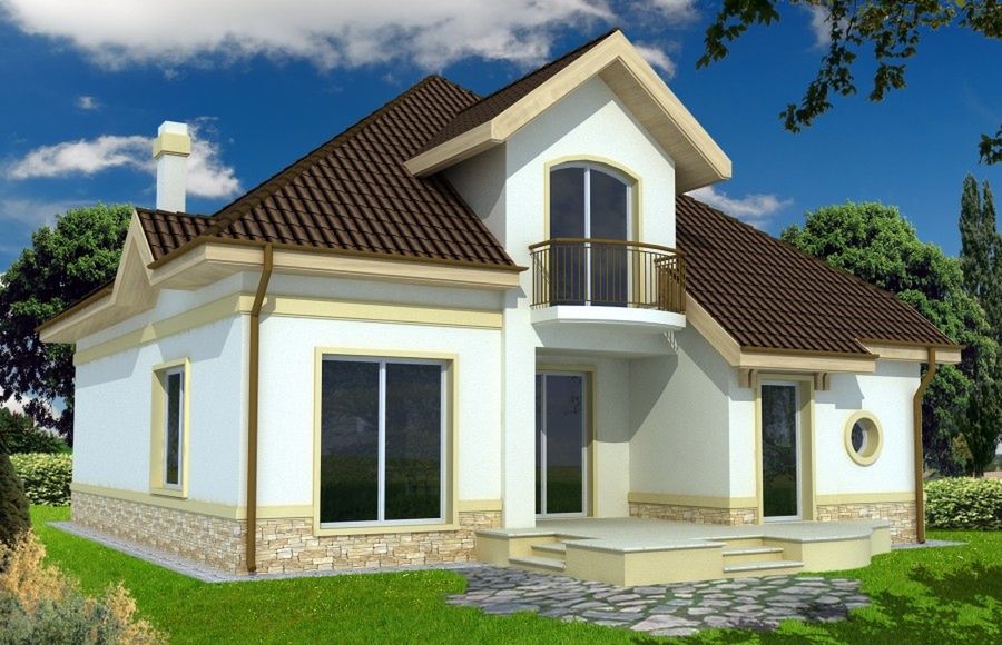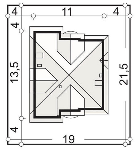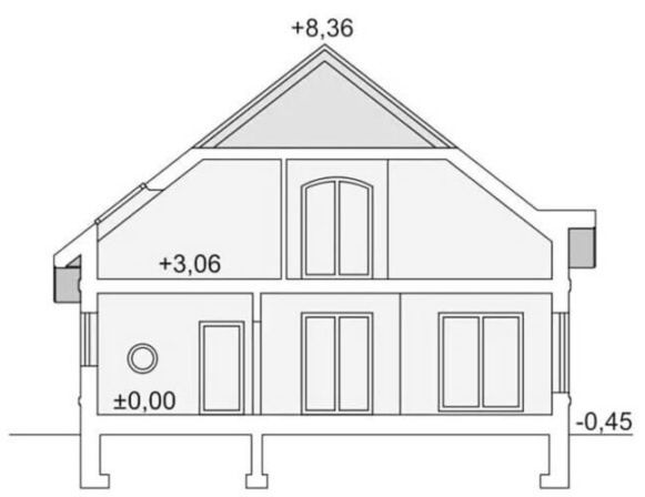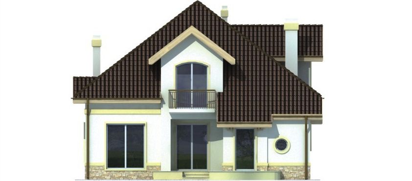 Graficzne opracowanie rzutów poglądowych widocznych na karcie projektu zostało wykonane przez Extradom.pl. Prezentowane przez Extradom.pl wizualizacje wykonane zostały przez autora projektu i należy poczytywać je jedynie za przykład i propozycję wykończenia, wizję architektoniczną autora projektu. Ostateczne wykończenie budynku może nastąpić na wiele sposobów. Szczegółowe rozwiązania zastosowane w oferowanej dokumentacji - w tym również ilość, lokalizacje i wygląd okien, drzwi, kominów - mogą w niewielkim stopniu różnić się od prezentowanej wizualizacji budynku.