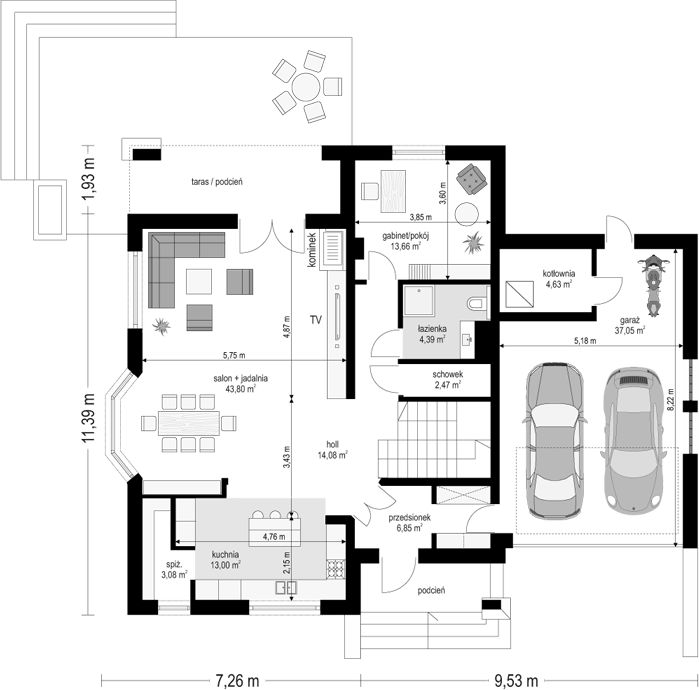 PROJEKT Z BUDOWĄ Istnieje możliwość zaadaptowania tego projektu do technologii prefabrykowanej/modułowej i budowy nawet w 6 miesięcy ze stałym kosztem budowy