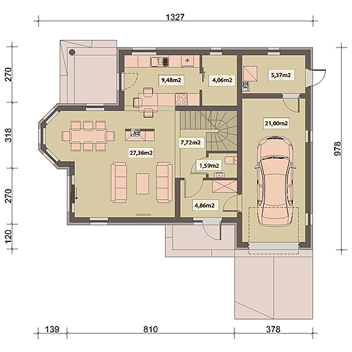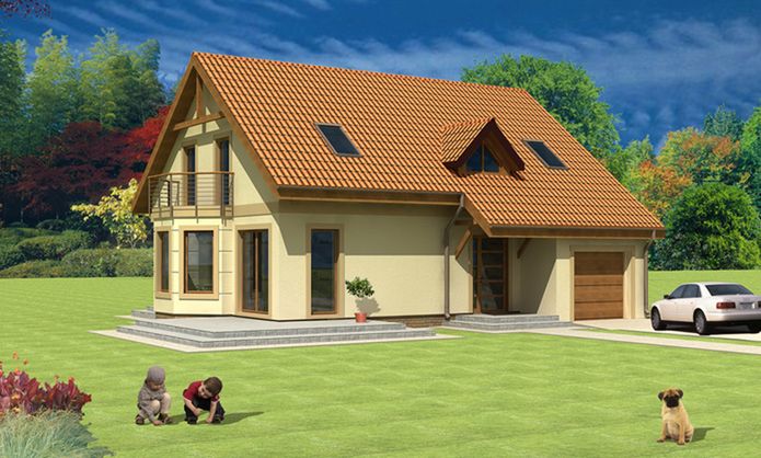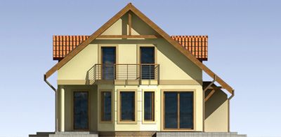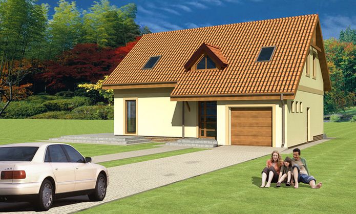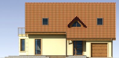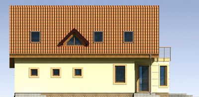 Graficzne opracowanie rzutów poglądowych widocznych na karcie projektu zostało wykonane przez Extradom.pl. Prezentowane przez Extradom.pl wizualizacje wykonane zostały przez autora projektu i należy poczytywać je jedynie za przykład i propozycję wykończenia, wizję architektoniczną autora projektu. Ostateczne wykończenie budynku może nastąpić na wiele sposobów. Szczegółowe rozwiązania zastosowane w oferowanej dokumentacji - w tym również ilość, lokalizacje i wygląd okien, drzwi, kominów - mogą w niewielkim stopniu różnić się od prezentowanej wizualizacji budynku.