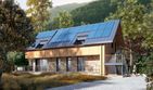 Ściany: 2-warstwowe - pustak ceramiczny + wełna mineralna ISOVER. Stropy: żelbetowe, wylewane. Dach: blacha na rąbek stojący Ruukki Classic, kąt nachylenia 45°. Ogrzewanie: pompa ciepła, podłogowe, kominkowe, rekuperacja bezpłatnie: projekt instalacji klimatyzacji i projekt instalacji kolektorów słonecznych.