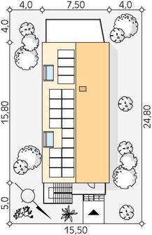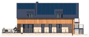 Graficzne opracowanie rzutów poglądowych widocznych na karcie projektu zostało wykonane przez Extradom.pl. Prezentowane przez Extradom.pl wizualizacje wykonane zostały przez autora projektu i należy poczytywać je jedynie za przykład i propozycję wykończenia, wizję architektoniczną autora projektu. Ostateczne wykończenie budynku może nastąpić na wiele sposobów. Szczegółowe rozwiązania zastosowane w oferowanej dokumentacji - w tym również ilość, lokalizacje i wygląd okien, drzwi, kominów - mogą w niewielkim stopniu różnić się od prezentowanej wizualizacji budynku.