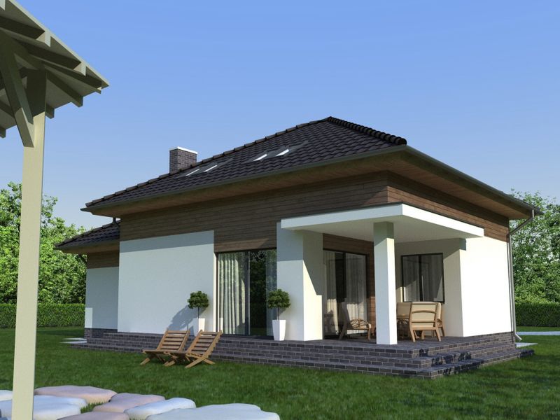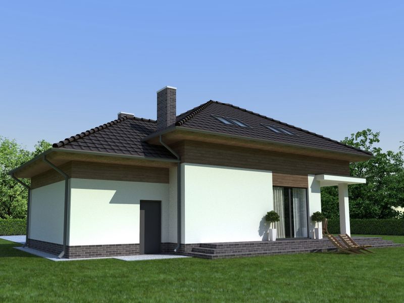 Graficzne opracowanie rzutów poglądowych widocznych na karcie projektu zostało wykonane przez Extradom.pl. Prezentowane przez Extradom.pl wizualizacje wykonane zostały przez autora projektu i należy poczytywać je jedynie za przykład i propozycję wykończenia, wizję architektoniczną autora projektu. Ostateczne wykończenie budynku może nastąpić na wiele sposobów. Szczegółowe rozwiązania zastosowane w oferowanej dokumentacji - w tym również ilość, lokalizacje i wygląd okien, drzwi, kominów - mogą w niewielkim stopniu różnić się od prezentowanej wizualizacji budynku.