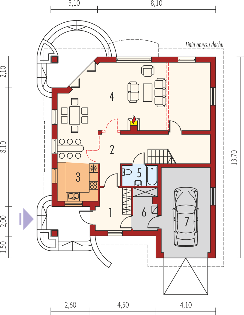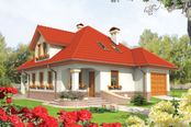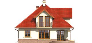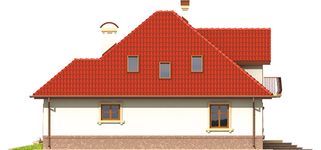 Graficzne opracowanie rzutów poglądowych widocznych na karcie projektu zostało wykonane przez Extradom.pl. Prezentowane przez Extradom.pl wizualizacje wykonane zostały przez autora projektu i należy poczytywać je jedynie za przykład i propozycję wykończenia, wizję architektoniczną autora projektu. Ostateczne wykończenie budynku może nastąpić na wiele sposobów. Szczegółowe rozwiązania zastosowane w oferowanej dokumentacji - w tym również ilość, lokalizacje i wygląd okien, drzwi, kominów - mogą w niewielkim stopniu różnić się od prezentowanej wizualizacji budynku.