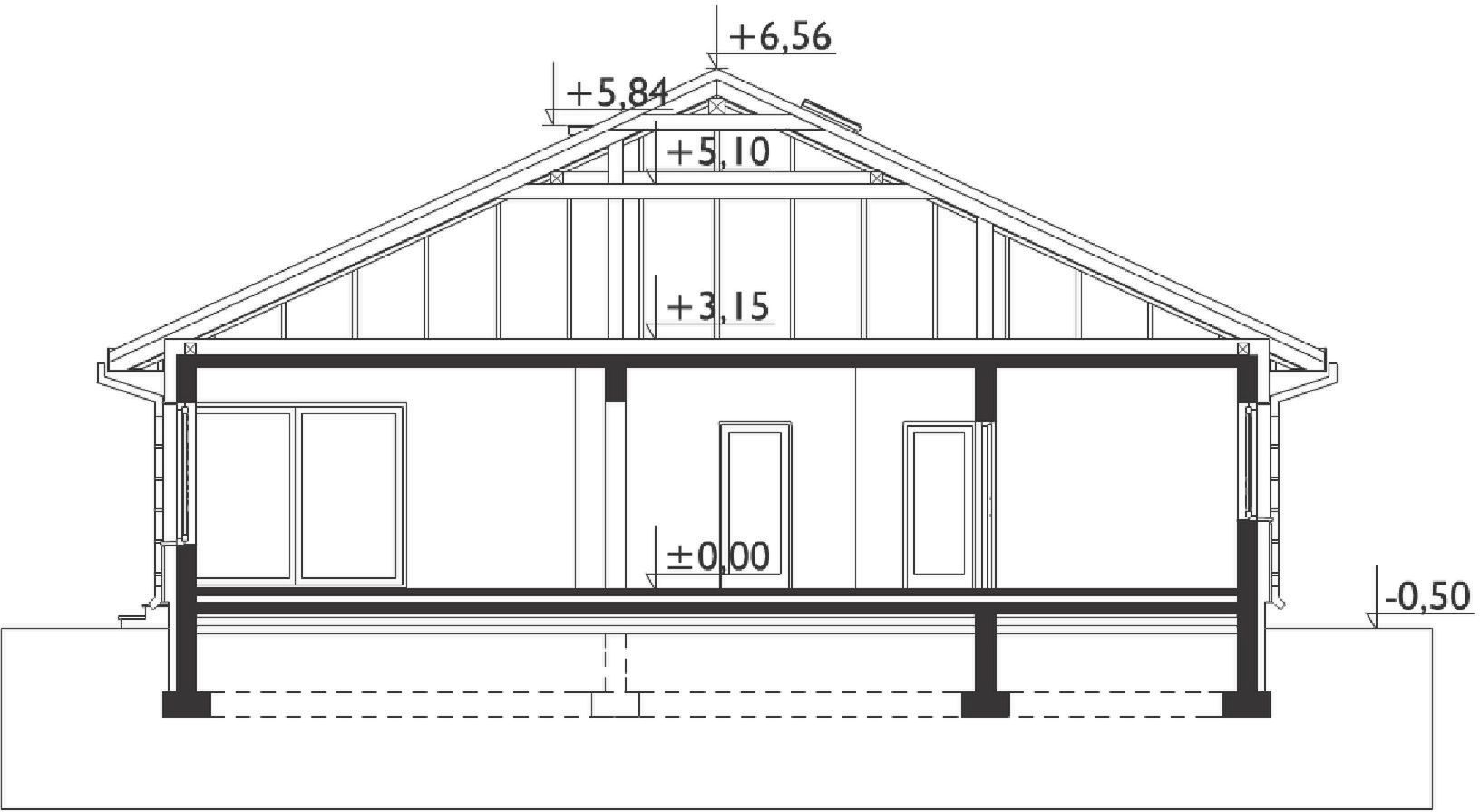 Wersja technologiczna: murowana - ceramika. Izolacja termiczna ścian zewnętrznych: Austrotherm. Strop: lekki strop panelowy Smart firmy Konbet. Typ schodów: brak. Konstrukcja dachu: drewniana krokwiowo-jętkowa. Typ ogrzewania: Kocioł na gaz. Dostępna wersja z pompą ciepła: Tak. Wentylacja: mechaniczna. Ściany zewnętrzne: 25 cm ceramika TERMOton. Ściany wewnętrzne: 25 cm ceramika TERMOton. Ściany wewnętrzne działowe: 11 cm ceramika TERMOton. Wentylacja: mechaniczna mechaniczna Thessla Green.