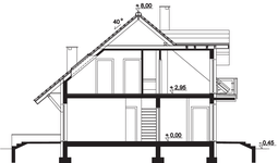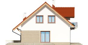 Graficzne opracowanie rzutów poglądowych widocznych na karcie projektu zostało wykonane przez Extradom.pl. Prezentowane przez Extradom.pl wizualizacje wykonane zostały przez autora projektu i należy poczytywać je jedynie za przykład i propozycję wykończenia, wizję architektoniczną autora projektu. Ostateczne wykończenie budynku może nastąpić na wiele sposobów. Szczegółowe rozwiązania zastosowane w oferowanej dokumentacji - w tym również ilość, lokalizacje i wygląd okien, drzwi, kominów - mogą w niewielkim stopniu różnić się od prezentowanej wizualizacji budynku.