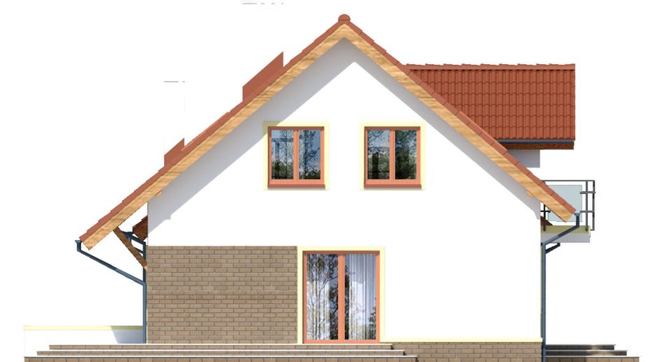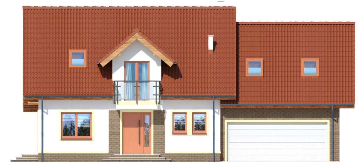 Graficzne opracowanie rzutów poglądowych widocznych na karcie projektu zostało wykonane przez Extradom.pl. Prezentowane przez Extradom.pl wizualizacje wykonane zostały przez autora projektu i należy poczytywać je jedynie za przykład i propozycję wykończenia, wizję architektoniczną autora projektu. Ostateczne wykończenie budynku może nastąpić na wiele sposobów. Szczegółowe rozwiązania zastosowane w oferowanej dokumentacji - w tym również ilość, lokalizacje i wygląd okien, drzwi, kominów - mogą w niewielkim stopniu różnić się od prezentowanej wizualizacji budynku.