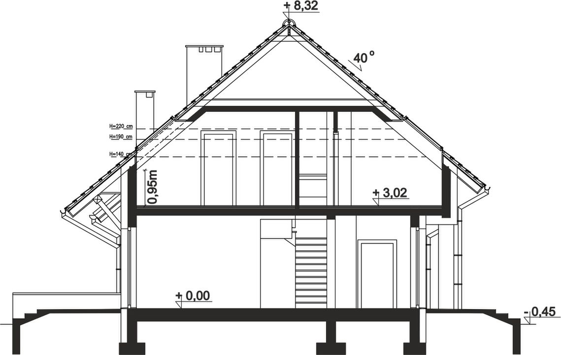 Budynek posadowiony został na fundamentach betonowych. Ściany zewnętrzne dwuwarstwowe z betonu komórkowego. Ściany wewnętrzne z betonu komórkowego jak i z płyty gipsowo-kartonowej. Strop żelbetowy-wylewany. Więźba dachowa drewniana. Pokrycie dachu - dachówka ceramiczna lub cementowa. Ogrzewanie gazowe lub na paliwo stałe.