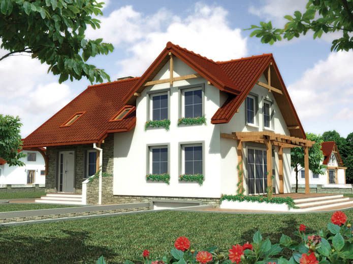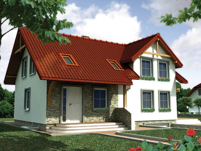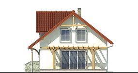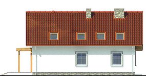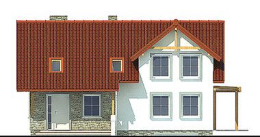 Graficzne opracowanie rzutów poglądowych widocznych na karcie projektu zostało wykonane przez Extradom.pl. Prezentowane przez Extradom.pl wizualizacje wykonane zostały przez autora projektu i należy poczytywać je jedynie za przykład i propozycję wykończenia, wizję architektoniczną autora projektu. Ostateczne wykończenie budynku może nastąpić na wiele sposobów. Szczegółowe rozwiązania zastosowane w oferowanej dokumentacji - w tym również ilość, lokalizacje i wygląd okien, drzwi, kominów - mogą w niewielkim stopniu różnić się od prezentowanej wizualizacji budynku.
