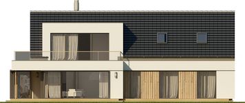Graficzne opracowanie rzutów poglądowych widocznych na karcie projektu zostało wykonane przez Extradom.pl. Prezentowane przez Extradom.pl wizualizacje wykonane zostały przez autora projektu i należy poczytywać je jedynie za przykład i propozycję wykończenia, wizję architektoniczną autora projektu. Ostateczne wykończenie budynku może nastąpić na wiele sposobów. Szczegółowe rozwiązania zastosowane w oferowanej dokumentacji - w tym również ilość, lokalizacje i wygląd okien, drzwi, kominów - mogą w niewielkim stopniu różnić się od prezentowanej wizualizacji budynku.