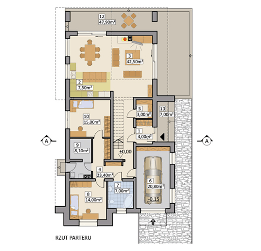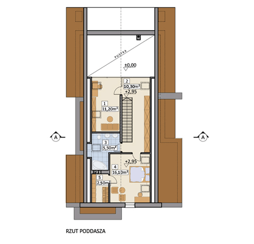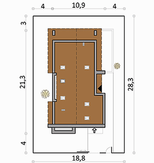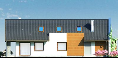 Graficzne opracowanie rzutów poglądowych widocznych na karcie projektu zostało wykonane przez Extradom.pl. Prezentowane przez Extradom.pl wizualizacje wykonane zostały przez autora projektu i należy poczytywać je jedynie za przykład i propozycję wykończenia, wizję architektoniczną autora projektu. Ostateczne wykończenie budynku może nastąpić na wiele sposobów. Szczegółowe rozwiązania zastosowane w oferowanej dokumentacji - w tym również ilość, lokalizacje i wygląd okien, drzwi, kominów - mogą w niewielkim stopniu różnić się od prezentowanej wizualizacji budynku.