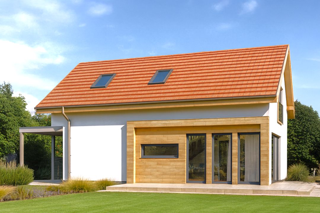 Fundamenty: żelbetowe, ściany fundamentowe z bloczków betonowych. Ściany: dwuwarstwowe pustak ceramiczny + izolacja termiczna. Stropy: gęstożebrowe. Dach: dwuspadowy, konstrukcja dachu drewniana, dachówka ceramiczna lub cementowa. Elewacja: tynk cienkowarstwowy, drewno elewacyjne, stolarka PCV lub drewniana.