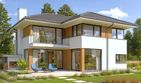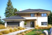 Fundamenty: żelbetowe, ściany fundamentowe z bloczków betonowych. Ściany: dwuwarstwowe - pustak ceramiczny + izolacja termiczna. Strop: monolityczny. Dach: wielospadowy, konstrukcja drewniana, dachówka ceramiczna płaska/prostokątna, ciemnoszara lub gont bitumiczny. Obróbki blacharskie z blachy powlekanej, tytan-ocynk. Elewacja: tynk strukturalny, cienkowartstwowy okładzina drewniana, drewnopodobna. Stolarka zewnętrzna: PVC, lub aluminiowa, lub drewniana w kolorze ciemnoszarym. Kominek: tak.