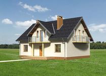 Graficzne opracowanie rzutów poglądowych widocznych na karcie projektu zostało wykonane przez Extradom.pl. Prezentowane przez Extradom.pl wizualizacje wykonane zostały przez autora projektu i należy poczytywać je jedynie za przykład i propozycję wykończenia, wizję architektoniczną autora projektu. Ostateczne wykończenie budynku może nastąpić na wiele sposobów. Szczegółowe rozwiązania zastosowane w oferowanej dokumentacji - w tym również ilość, lokalizacje i wygląd okien, drzwi, kominów - mogą w niewielkim stopniu różnić się od prezentowanej wizualizacji budynku.