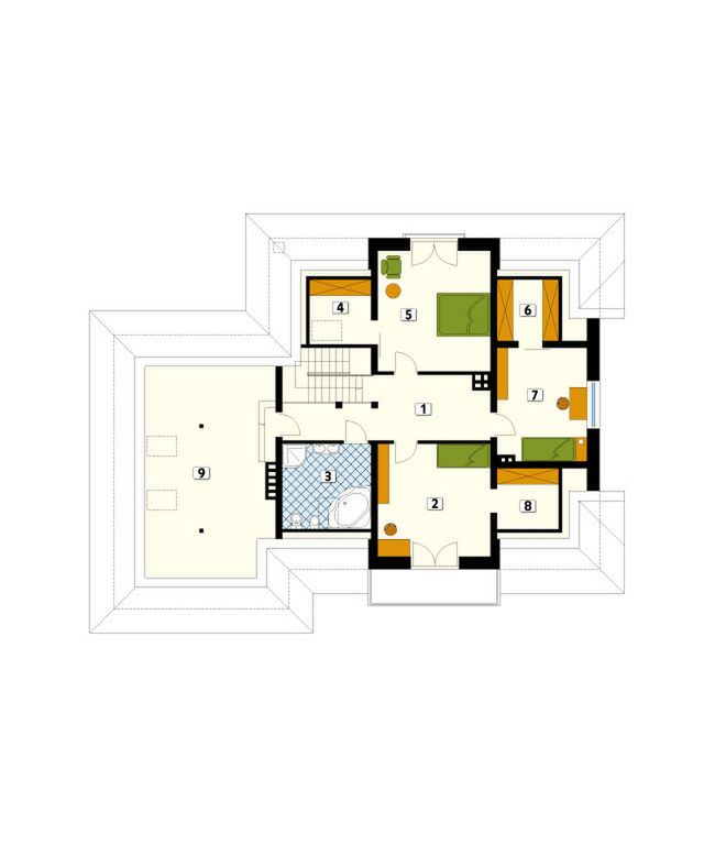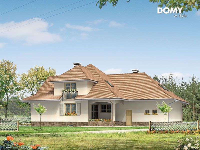 Graficzne opracowanie rzutów poglądowych widocznych na karcie projektu zostało wykonane przez Extradom.pl. Prezentowane przez Extradom.pl wizualizacje wykonane zostały przez autora projektu i należy poczytywać je jedynie za przykład i propozycję wykończenia, wizję architektoniczną autora projektu. Ostateczne wykończenie budynku może nastąpić na wiele sposobów. Szczegółowe rozwiązania zastosowane w oferowanej dokumentacji - w tym również ilość, lokalizacje i wygląd okien, drzwi, kominów - mogą w niewielkim stopniu różnić się od prezentowanej wizualizacji budynku.