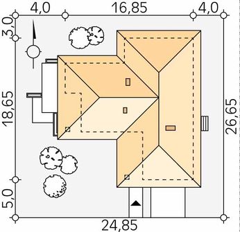 Ściany: 2-warstwowe - pustak ceramiczny + styropian Termo Organika. Stropy: żelbetowe, wylewane. Dach: dachówka, kąt nachylenia 30°. Dostępna wersja kąt 25°. Ogrzewanie: gazowe, na paliwo stałe.