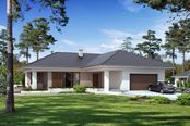 Graficzne opracowanie rzutów poglądowych widocznych na karcie projektu zostało wykonane przez Extradom.pl. Prezentowane przez Extradom.pl wizualizacje wykonane zostały przez autora projektu i należy poczytywać je jedynie za przykład i propozycję wykończenia, wizję architektoniczną autora projektu. Ostateczne wykończenie budynku może nastąpić na wiele sposobów. Szczegółowe rozwiązania zastosowane w oferowanej dokumentacji - w tym również ilość, lokalizacje i wygląd okien, drzwi, kominów - mogą w niewielkim stopniu różnić się od prezentowanej wizualizacji budynku.