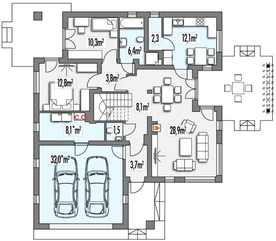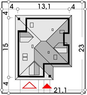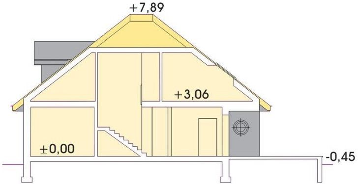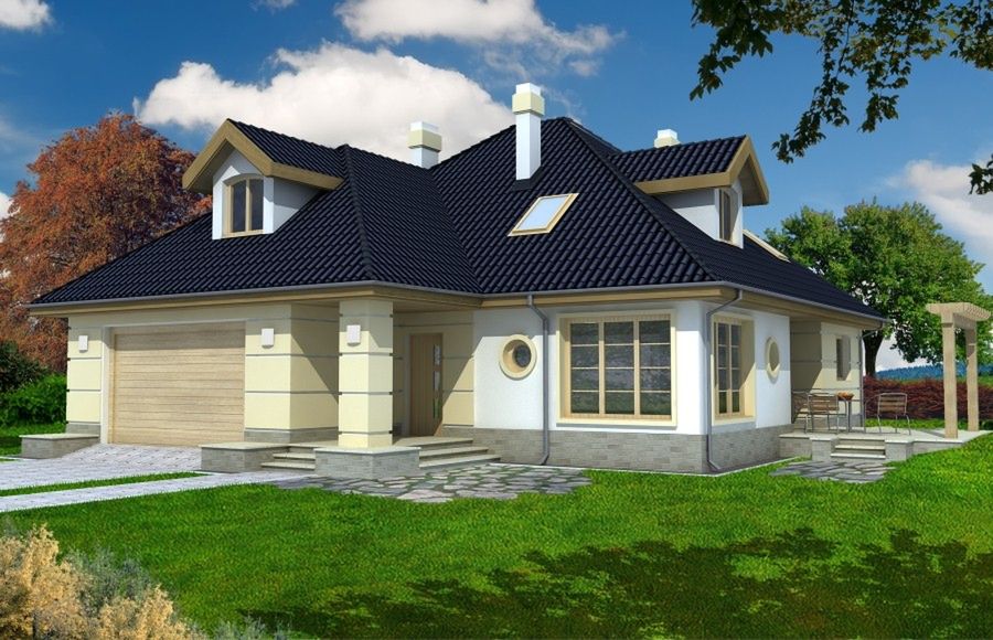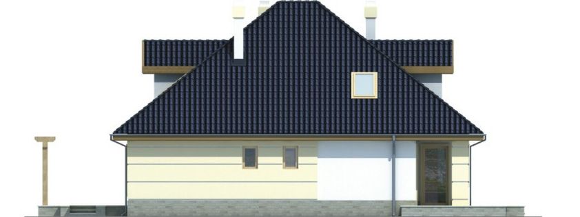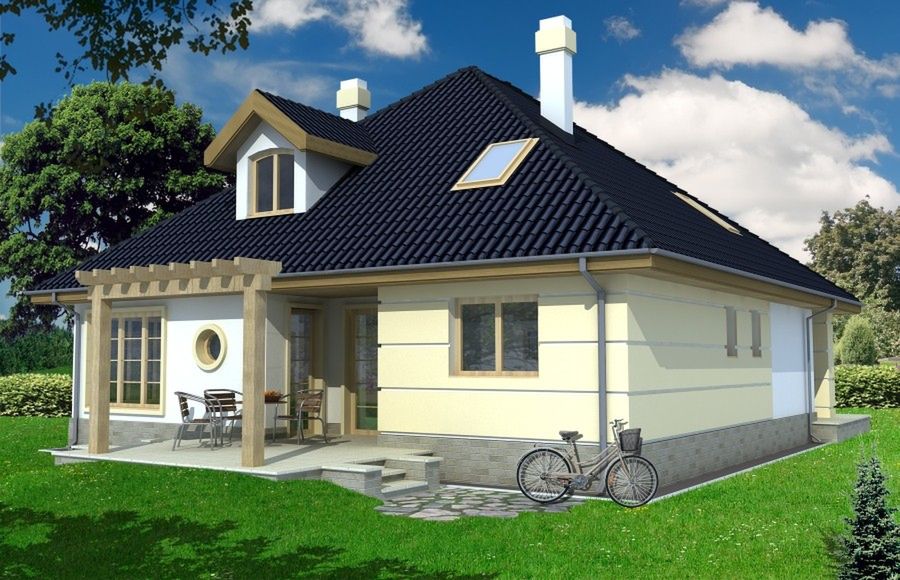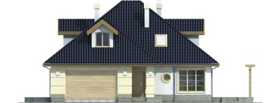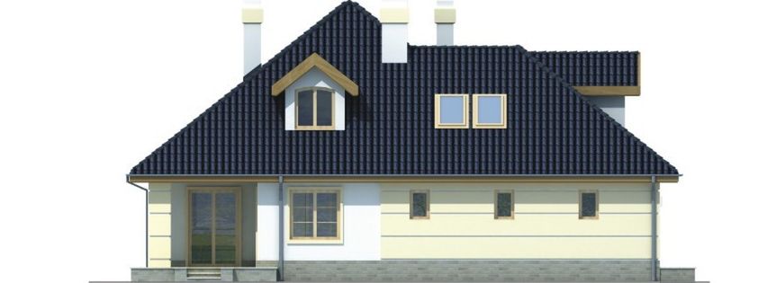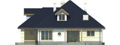 Graficzne opracowanie rzutów poglądowych widocznych na karcie projektu zostało wykonane przez Extradom.pl. Prezentowane przez Extradom.pl wizualizacje wykonane zostały przez autora projektu i należy poczytywać je jedynie za przykład i propozycję wykończenia, wizję architektoniczną autora projektu. Ostateczne wykończenie budynku może nastąpić na wiele sposobów. Szczegółowe rozwiązania zastosowane w oferowanej dokumentacji - w tym również ilość, lokalizacje i wygląd okien, drzwi, kominów - mogą w niewielkim stopniu różnić się od prezentowanej wizualizacji budynku.