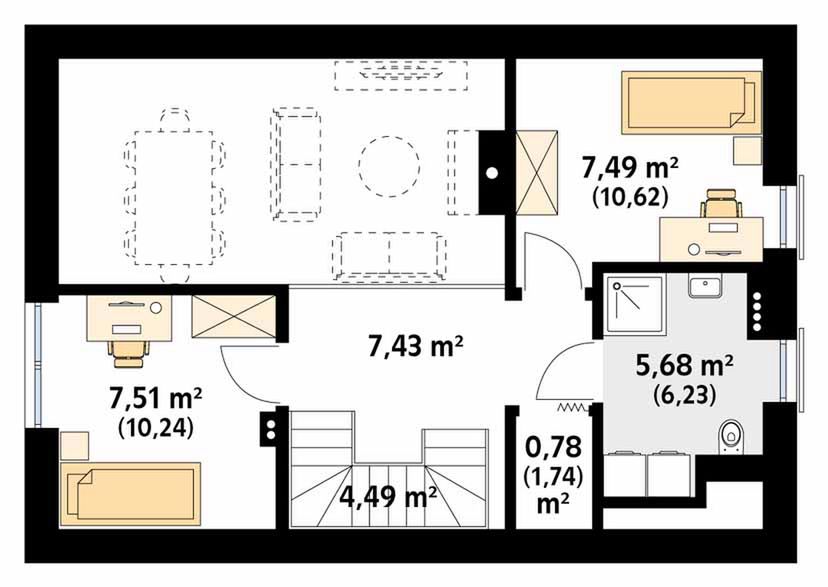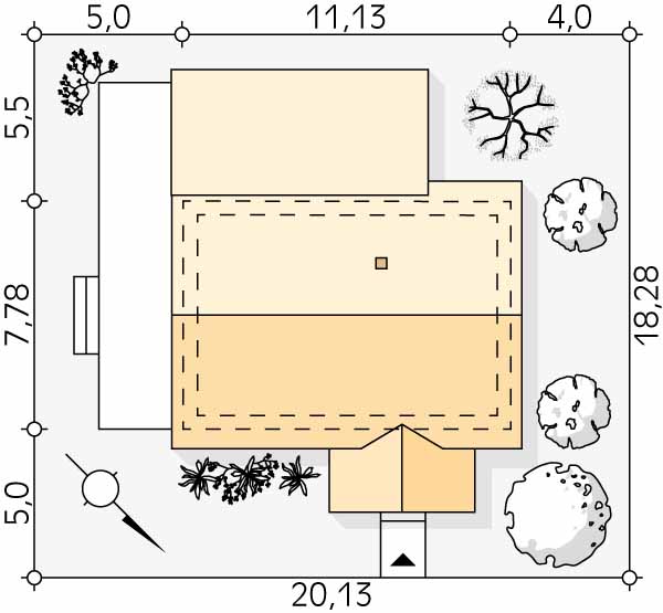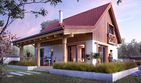 Graficzne opracowanie rzutów poglądowych widocznych na karcie projektu zostało wykonane przez Extradom.pl. Prezentowane przez Extradom.pl wizualizacje wykonane zostały przez autora projektu i należy poczytywać je jedynie za przykład i propozycję wykończenia, wizję architektoniczną autora projektu. Ostateczne wykończenie budynku może nastąpić na wiele sposobów. Szczegółowe rozwiązania zastosowane w oferowanej dokumentacji - w tym również ilość, lokalizacje i wygląd okien, drzwi, kominów - mogą w niewielkim stopniu różnić się od prezentowanej wizualizacji budynku.