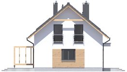 Graficzne opracowanie rzutów poglądowych widocznych na karcie projektu zostało wykonane przez Extradom.pl. Prezentowane przez Extradom.pl wizualizacje wykonane zostały przez autora projektu i należy poczytywać je jedynie za przykład i propozycję wykończenia, wizję architektoniczną autora projektu. Ostateczne wykończenie budynku może nastąpić na wiele sposobów. Szczegółowe rozwiązania zastosowane w oferowanej dokumentacji - w tym również ilość, lokalizacje i wygląd okien, drzwi, kominów - mogą w niewielkim stopniu różnić się od prezentowanej wizualizacji budynku.