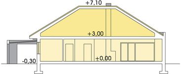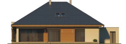 Graficzne opracowanie rzutów poglądowych widocznych na karcie projektu zostało wykonane przez Extradom.pl. Prezentowane przez Extradom.pl wizualizacje wykonane zostały przez autora projektu i należy poczytywać je jedynie za przykład i propozycję wykończenia, wizję architektoniczną autora projektu. Ostateczne wykończenie budynku może nastąpić na wiele sposobów. Szczegółowe rozwiązania zastosowane w oferowanej dokumentacji - w tym również ilość, lokalizacje i wygląd okien, drzwi, kominów - mogą w niewielkim stopniu różnić się od prezentowanej wizualizacji budynku.