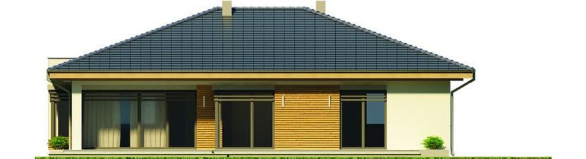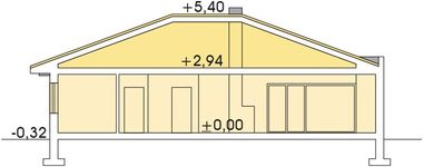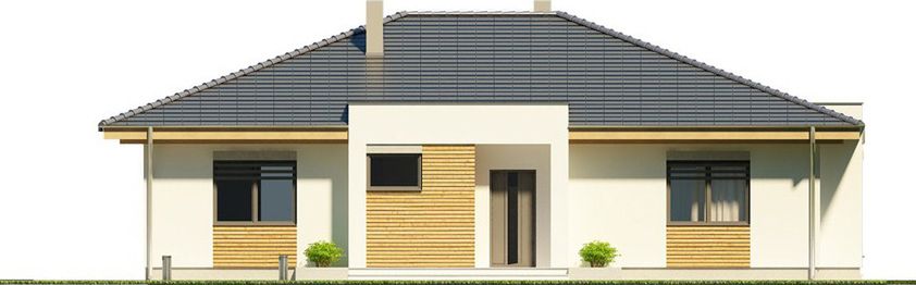 Graficzne opracowanie rzutów poglądowych widocznych na karcie projektu zostało wykonane przez Extradom.pl. Prezentowane przez Extradom.pl wizualizacje wykonane zostały przez autora projektu i należy poczytywać je jedynie za przykład i propozycję wykończenia, wizję architektoniczną autora projektu. Ostateczne wykończenie budynku może nastąpić na wiele sposobów. Szczegółowe rozwiązania zastosowane w oferowanej dokumentacji - w tym również ilość, lokalizacje i wygląd okien, drzwi, kominów - mogą w niewielkim stopniu różnić się od prezentowanej wizualizacji budynku.