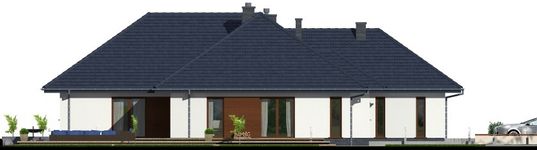 Graficzne opracowanie rzutów poglądowych widocznych na karcie projektu zostało wykonane przez Extradom.pl. Prezentowane przez Extradom.pl wizualizacje wykonane zostały przez autora projektu i należy poczytywać je jedynie za przykład i propozycję wykończenia, wizję architektoniczną autora projektu. Ostateczne wykończenie budynku może nastąpić na wiele sposobów. Szczegółowe rozwiązania zastosowane w oferowanej dokumentacji - w tym również ilość, lokalizacje i wygląd okien, drzwi, kominów - mogą w niewielkim stopniu różnić się od prezentowanej wizualizacji budynku.
