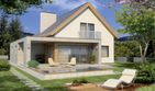 Graficzne opracowanie rzutów poglądowych widocznych na karcie projektu zostało wykonane przez Extradom.pl. Prezentowane przez Extradom.pl wizualizacje wykonane zostały przez autora projektu i należy poczytywać je jedynie za przykład i propozycję wykończenia, wizję architektoniczną autora projektu. Ostateczne wykończenie budynku może nastąpić na wiele sposobów. Szczegółowe rozwiązania zastosowane w oferowanej dokumentacji - w tym również ilość, lokalizacje i wygląd okien, drzwi, kominów - mogą w niewielkim stopniu różnić się od prezentowanej wizualizacji budynku.